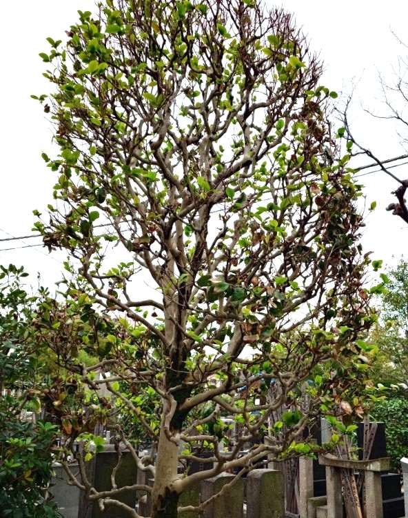 一度葉を落としたツバキの木です