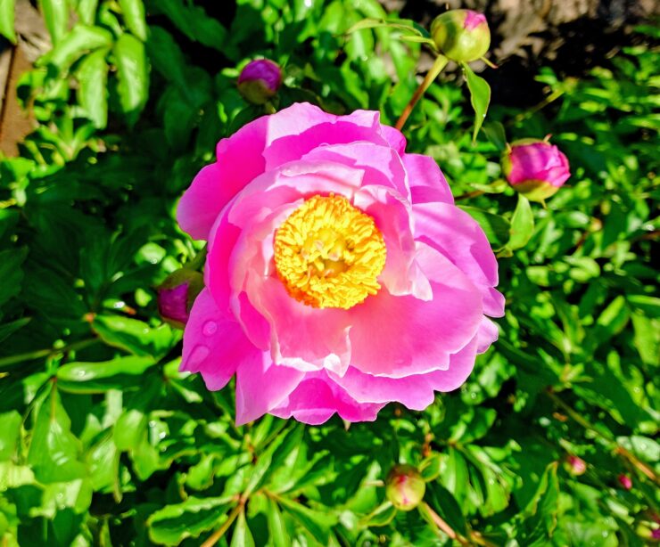 直植えのシャクヤクが1輪咲きました 周囲にあるツボミを落とすと大きな花が咲くと聞きました 福性寺ではそのままです